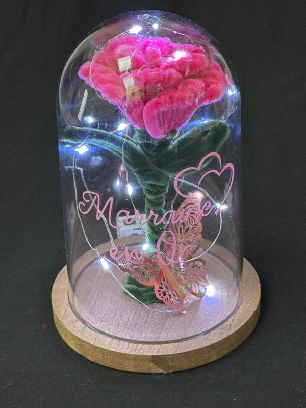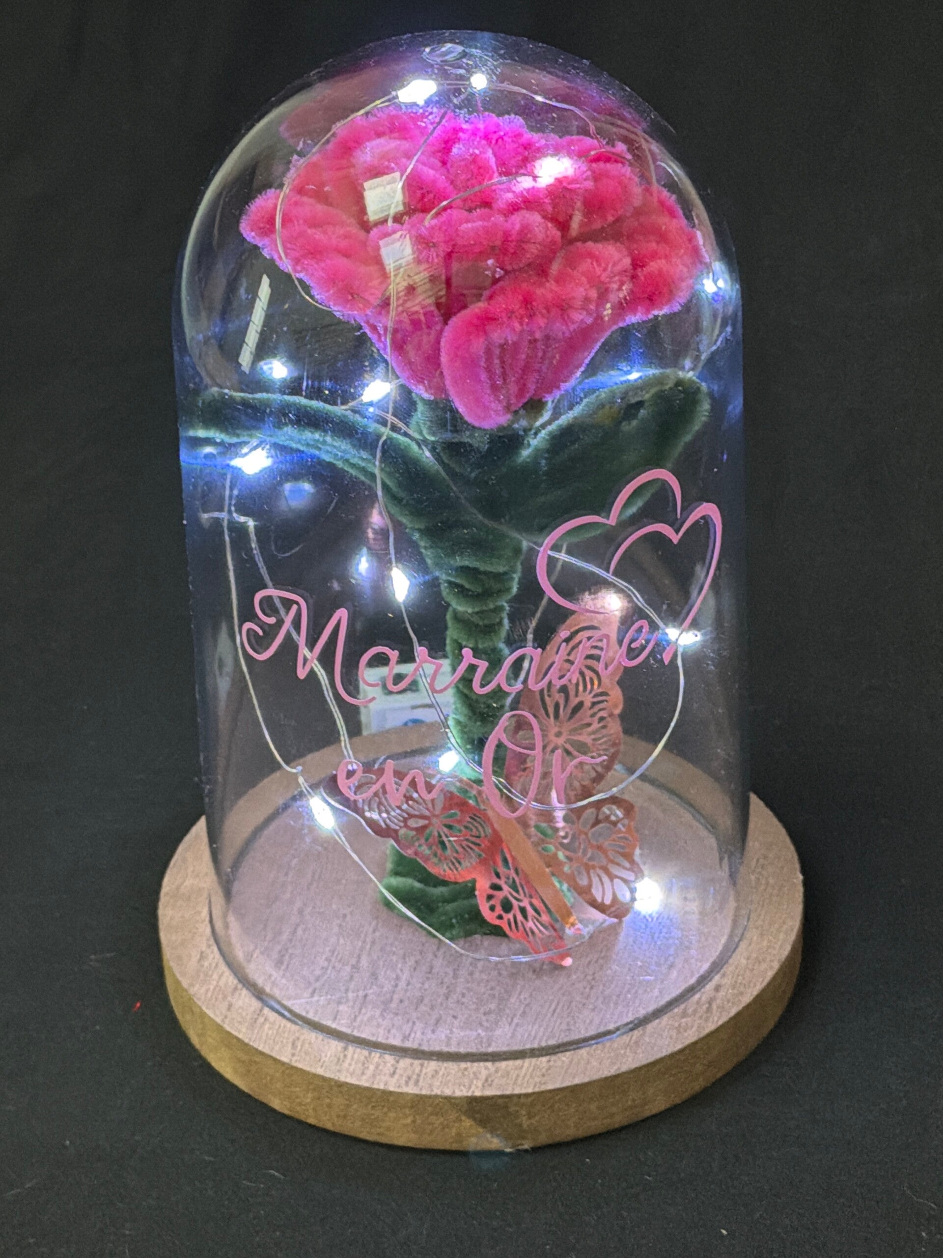Cloche lumineuse rose fil de chenille « marraine en or »